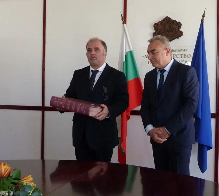 Кръстю Кръстев символично предаде на наследника си Найден Тодоров фототипно копие на прочутата Манасиева хроника, която „е символ на задълженията в Министерството на културата“ и която в знак на приемственост си предават министрите на културата.