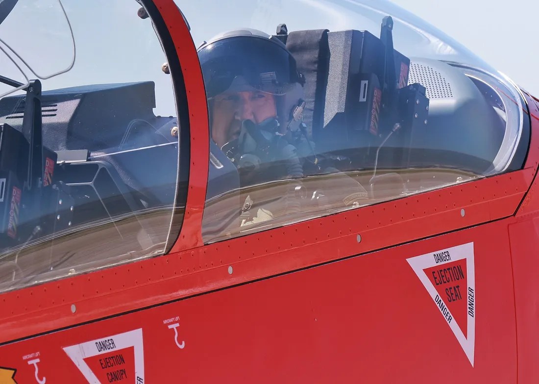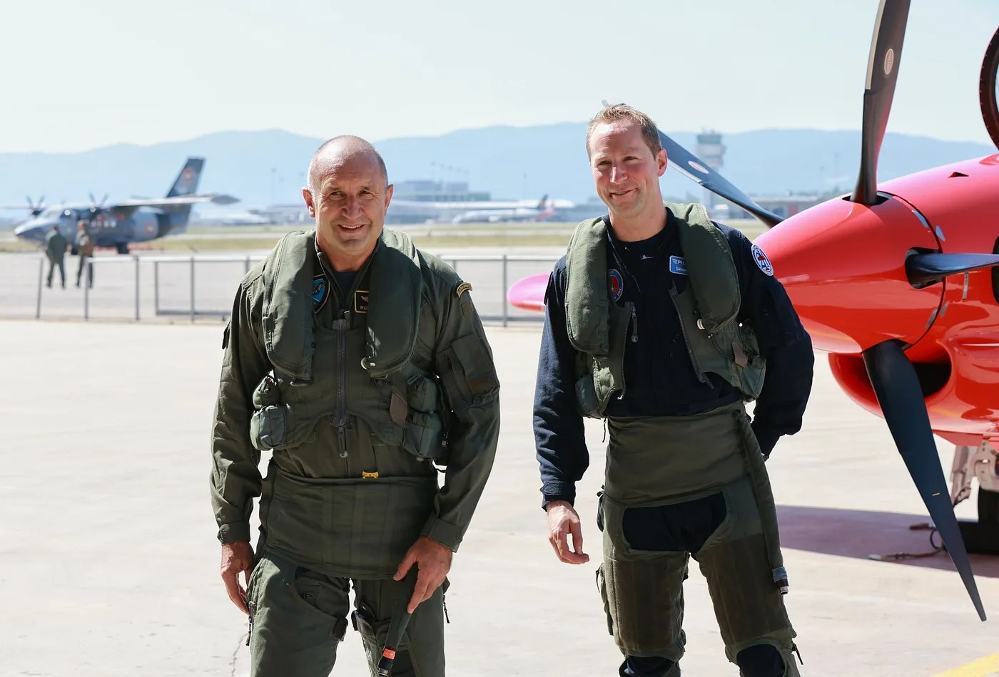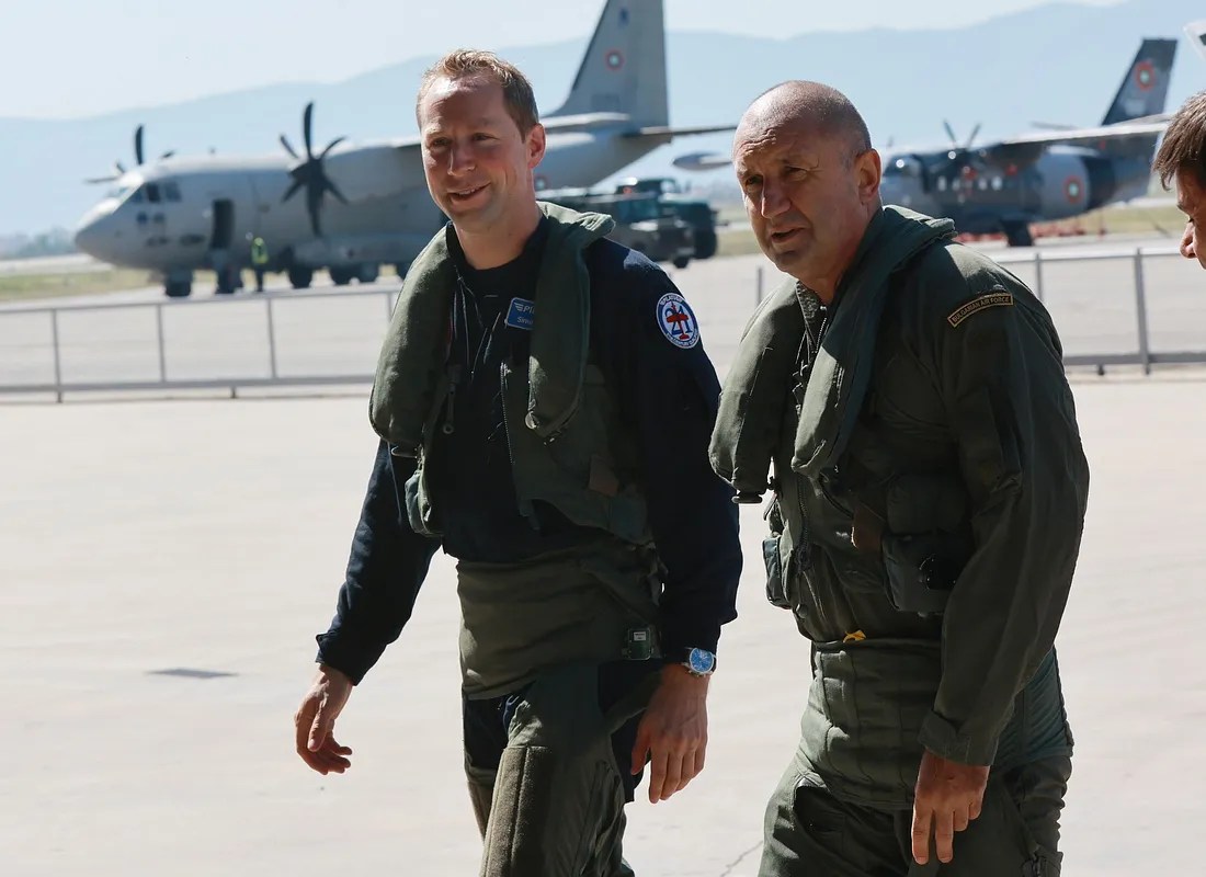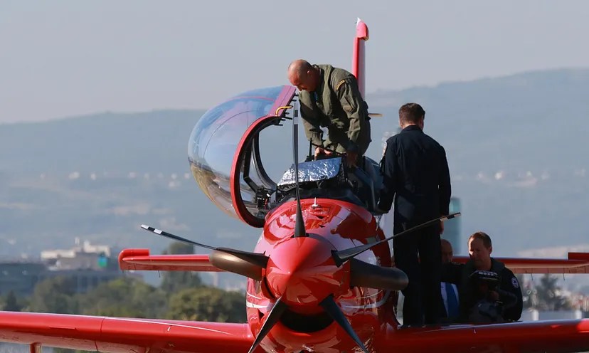 Президентът и върховен главнокомандващ на въоръжените сили на Република България Румен Радев участва в демонстрационен полет с учебно-тренировъчния самолет от ново поколение РС-21 Pilatus Aircraft.